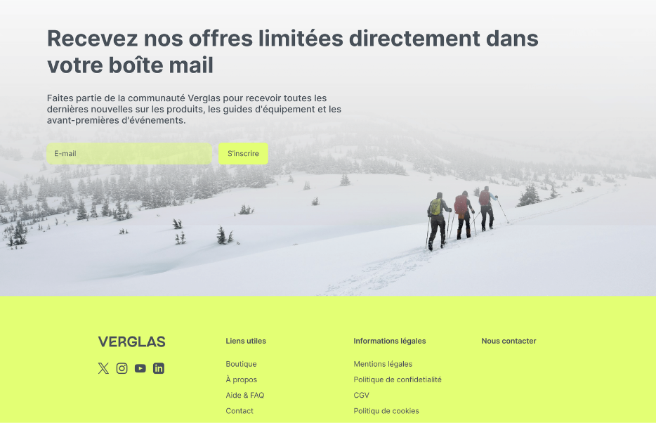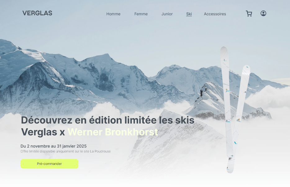 Création d’une landing page et d’un branding pour promouvoir Verglas, une nouvelle marque de ski.